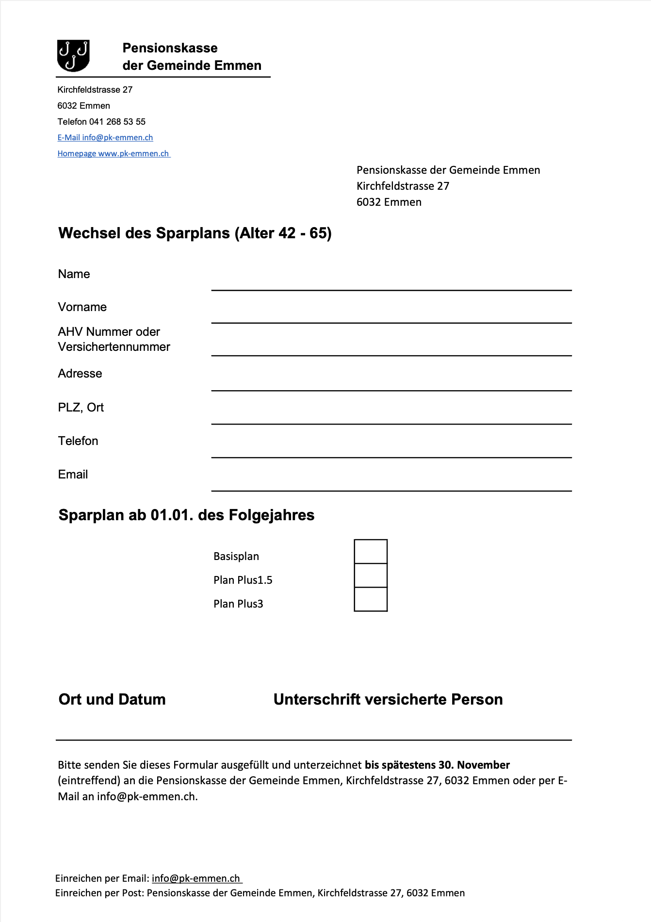 Die Mitarbeitenden der Gemeinde Emmen sind, für die 2. Säule in der eigenen Vorsorgeeinrichtung, der Pensionskasse